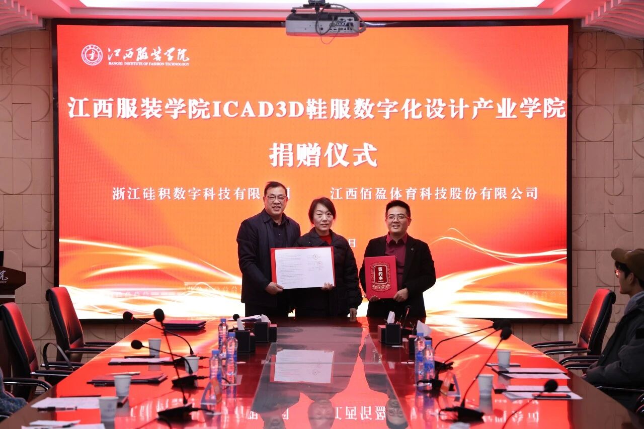 此次合作中,浙江硅积数字科技有限公司与江西佰盈体育科技股份有限公司发挥企业资源与技术优势,不仅与学校共建ICAD3D鞋服数字化科创中心,还为ICAD3D鞋服数字化设计产业学院提供捐赠支持。这一系列举措,是校企响应数字经济发展趋势、推动鞋服产业数字化转型的重要实践,也为学校创新创业教育注入了产业前沿的技术与资源。
