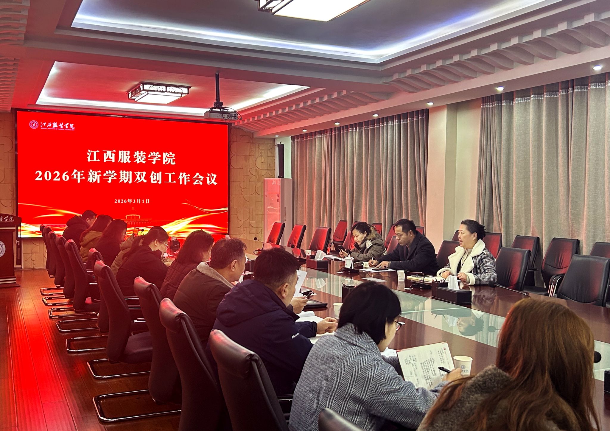 春潮涌动启新程,双创赋能谱新篇。2026年3月1日上午,江西服装学院新学期双创工作会议在行政楼二楼会议室召开。会议全面总结过往双创工作成效,聚焦赛事攻坚、课程融合、平台升级三大重点任务,明确新学期工作方向。创新创业学院院长段婷主持会议,副校长马国照出席会议并提出工作要求,各二级学院双创工作、赛事工作负责领导参会。