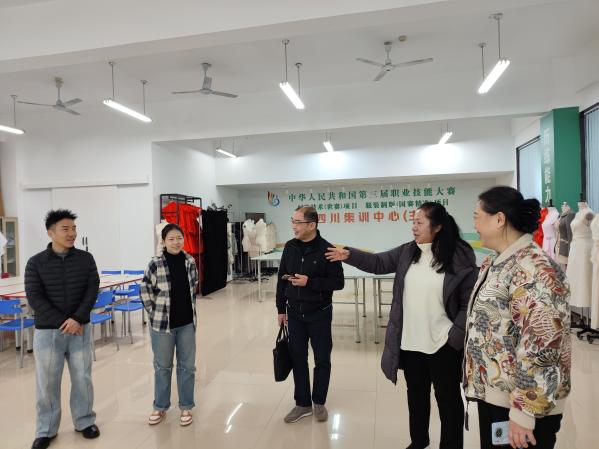 在中华人民共和国第三届职业技能大赛四川集训中心、阳川教授作为该中心时装技术项目主教练,详细介绍集训流程:“我们采用‘每日模拟考核+每周行业专家点评’模式,针对性提升选手应急处理与细节把控能力。”段婷院长一行实地查看集训工位的赛事模拟场景,郭晓强老师就选手训练周期规划与阳川教授深入交流。